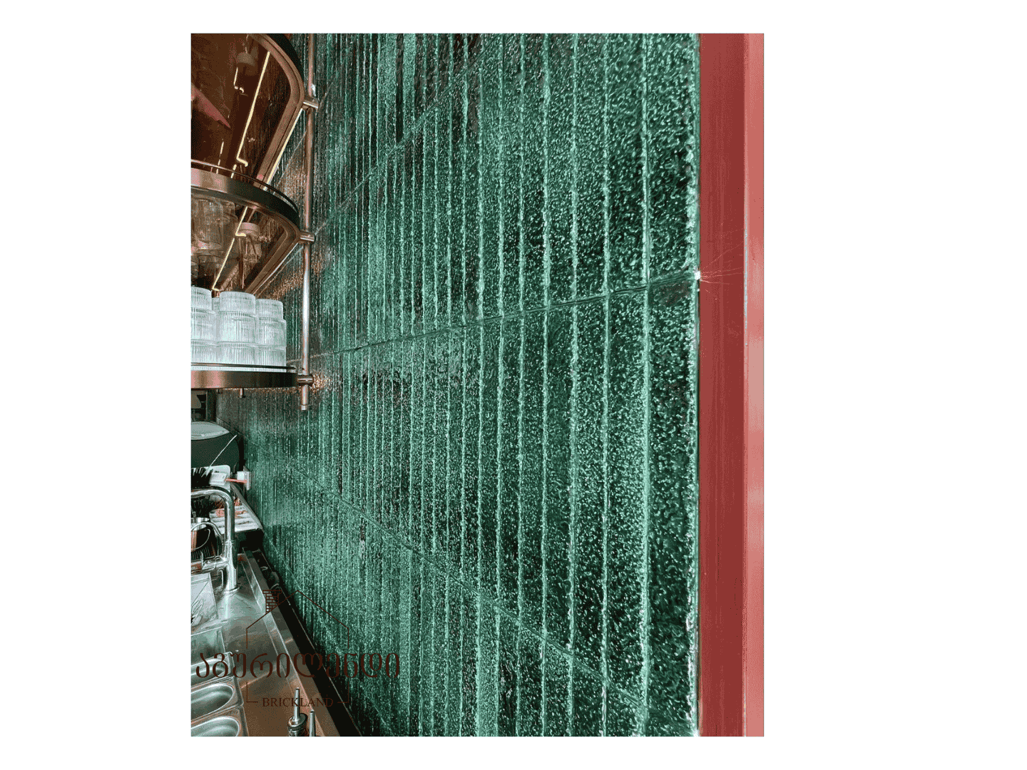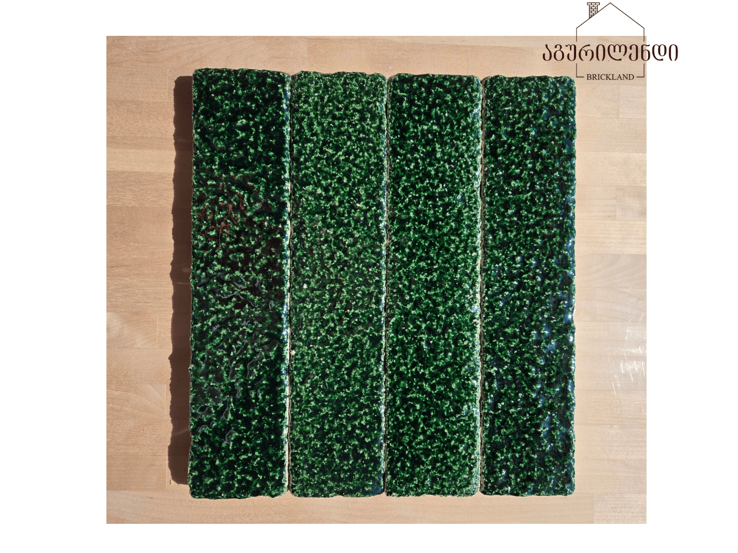 Handmade glazed bricks with a treated surface, made in various sizes and colors.